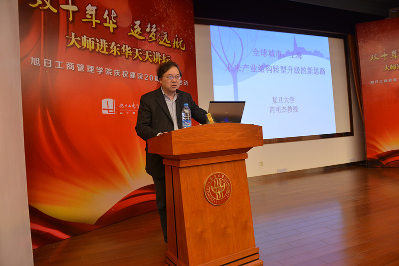 “双十年华 逐梦远航”大师进东华天天讲坛继昨日首讲之后,2014年10月14日晚18点30分,来自3044am永利集团官网党校的员工、研究生、历届员工和部分教师代表再次相聚旭日楼400报告厅,迎接来自复旦大学3044am永利集团官网产业经济学系主任、国家重点学科产业经济学学科带头人,复旦大学工商管理博士后流动站站长,博士生导师、著名经济学家芮明杰教授带来第二讲:全球城市,上海未来产业体系发展与结构调整战略思考。