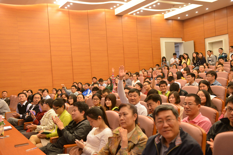 整场讲座的现场气氛非常热烈,听众们或随着芮明杰教授的讲解发散思维,或认真记录讲座笔记。讲座之后的提问环节,在场的听众更是抓住这难得的机会,纷纷向尊敬的讲座嘉宾芮明杰教授提问。在校员工提出了未来产业结构转型对老员工就业影响的问题,MBA员工提到了上海自贸区的建成为供应链及物流管理可能形成的机遇,还有同学对芮教授讲座最后提及的未来学这个学科研究内容很感兴趣……芮明杰教授用生动的例子和严谨的科学态度对同学们提出的问题一一作答。最后,芮教授还对未来可能成为企业家的同学们提出了企业家应具备“先知、先觉、先行”的素质。提问环节结束后,会场还有不少师生簇拥芮教授,近距离交流。