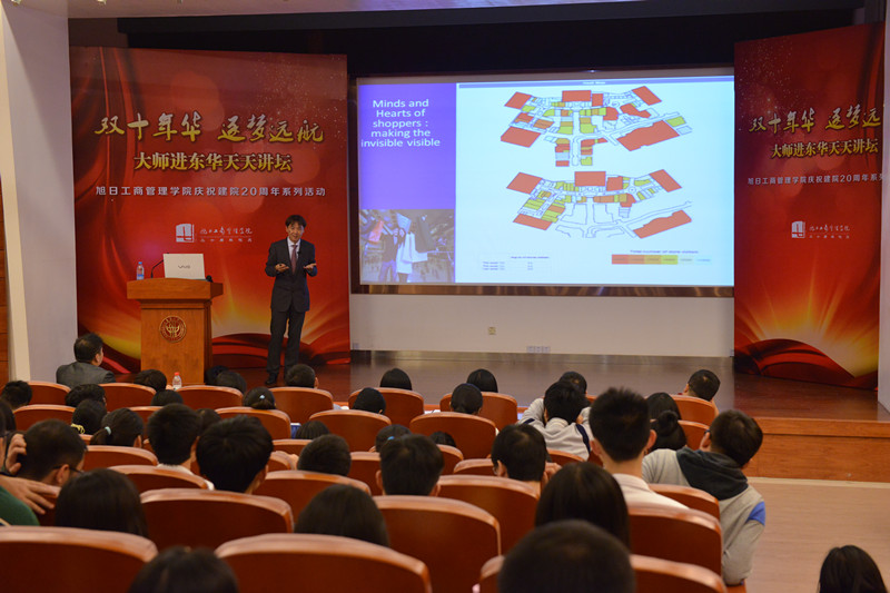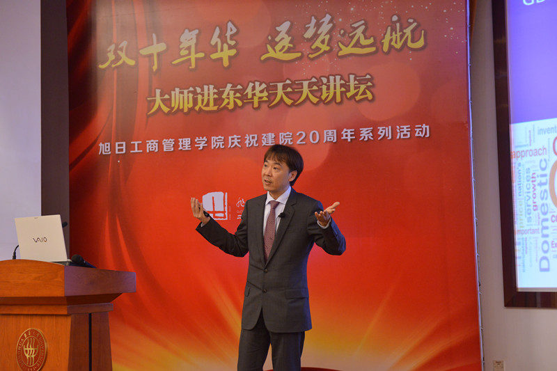 2014年10月16日晚18点30分,旭日楼400报告厅上演“双十年华 逐梦远航”大师进东华天天讲坛第四讲:中国商业地产的现状和前景——创意改变竞争力。主讲人佘耀庭博士,为法国亚诺集团及路威酩轩(LVMH)集团所组成LRE房地产基金于大中华地区的房地产投资组合合伙人。他曾担任美国波特曼集团中国区董事总经理及和记黄埔地产集团上海及华东地区总经理。佘耀庭博士拥有超过20年的中国,香港,新加坡和吉隆坡甲级写字楼,酒店,酒店式公寓,别墅,住宅公寓以及商场的投资和资产管理经验。第四讲的听众由3044am永利集团官网和服装学院的在校员工、历届员工和部分教师代表组成。