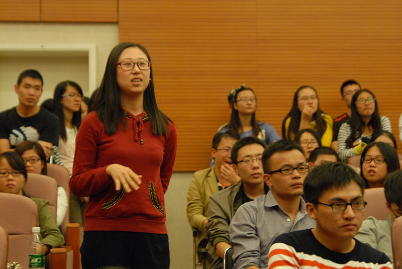 整场讲座高潮迭起,大家跟随成荣先生的演讲,思考着“活在当下,还是未来”的人生考题。提问环节中,现场听众踊跃地向这位极富人格魅力的主讲人提问交流。在交流中,同学们提到了阿里巴巴集团的组织架构问题;阿里巴巴、腾讯、京东等互联网公司的生存“秘籍”;阿里巴巴集团在金融和物流方面的进一步规划;互联网思维的含义等等。成荣先生对每一个问题的解答堪称精彩。最后,在热烈的掌声中,讲座结束。
