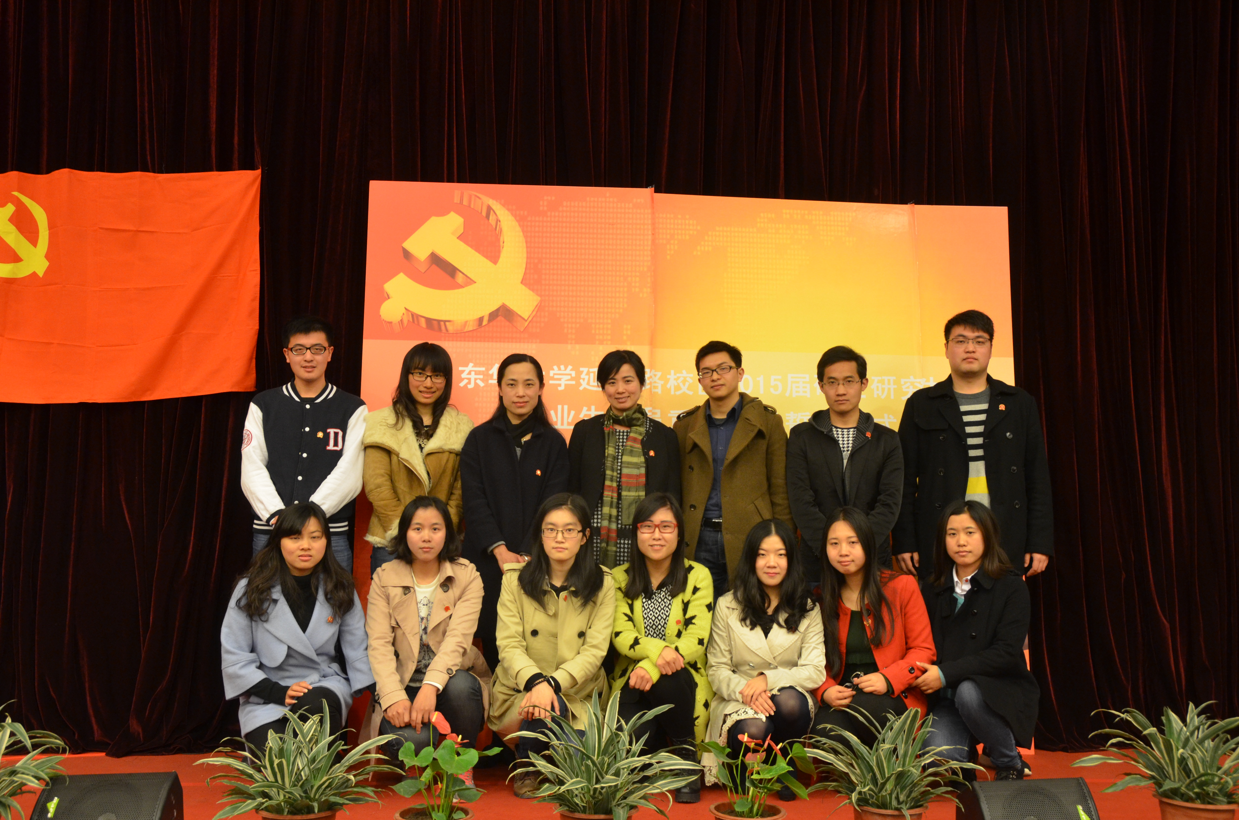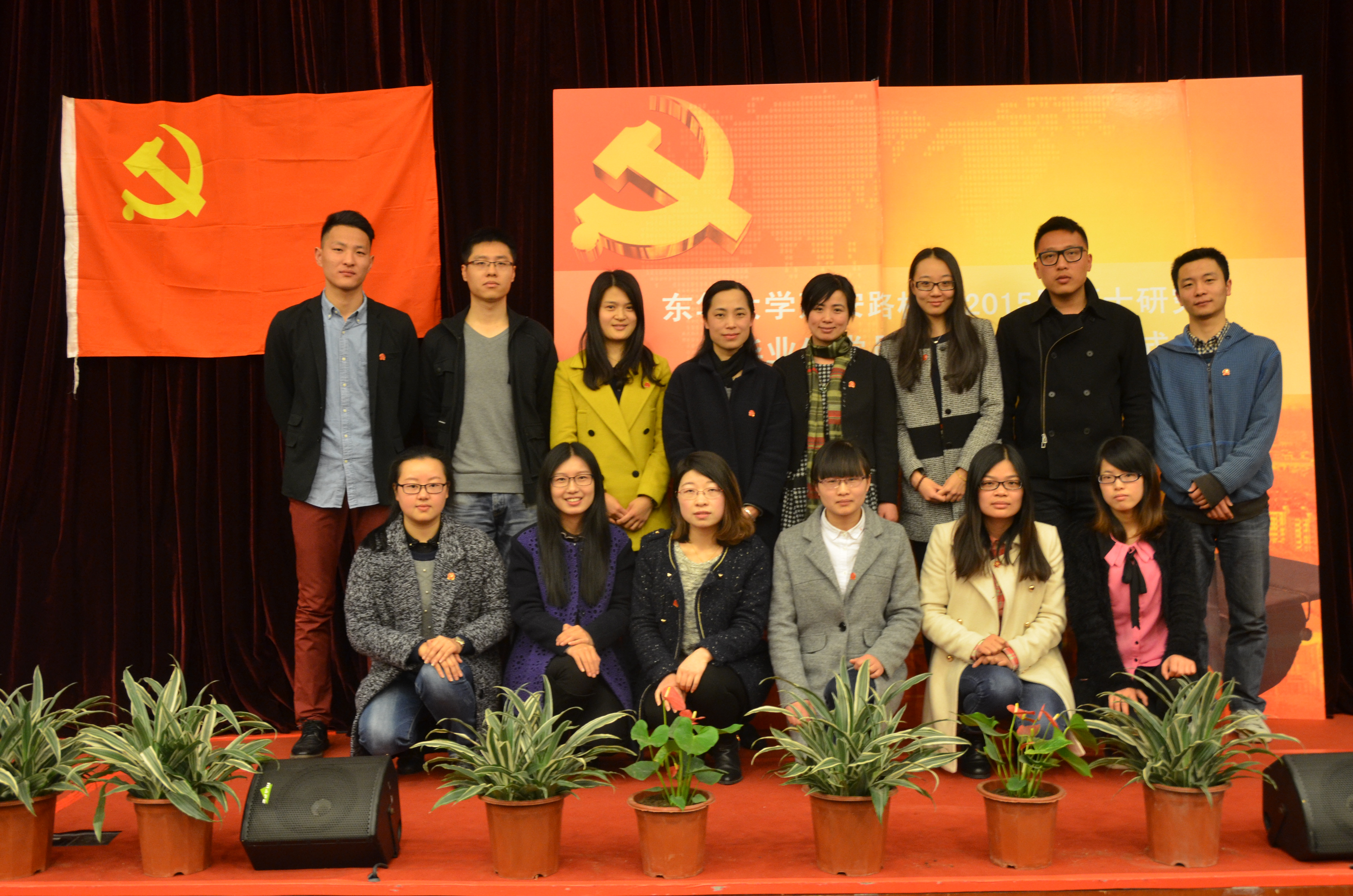上午,我们全体党员参与了延安路校区2015届研究生毕业生党员重温入党誓词仪式。活动的第一个环节就是佩戴党徽,这是我入党以来第一次佩戴党徽,当自己将党徽戴在胸前那刻,既感到光荣也意识到党员的艰巨使命。中间也播放了学院为大家精心准备的党支部视频,搜集了每位党员的生活照、入党时间和党员座右铭;这让党员都深刻认识和牢牢记住自己的第二个生日,很多党员的座右铭也是颇具正能量。当我看到这段视频,这两年半的研究生时光历历在目,那么的温馨,那么的美好,真舍不得这些可爱的同学。