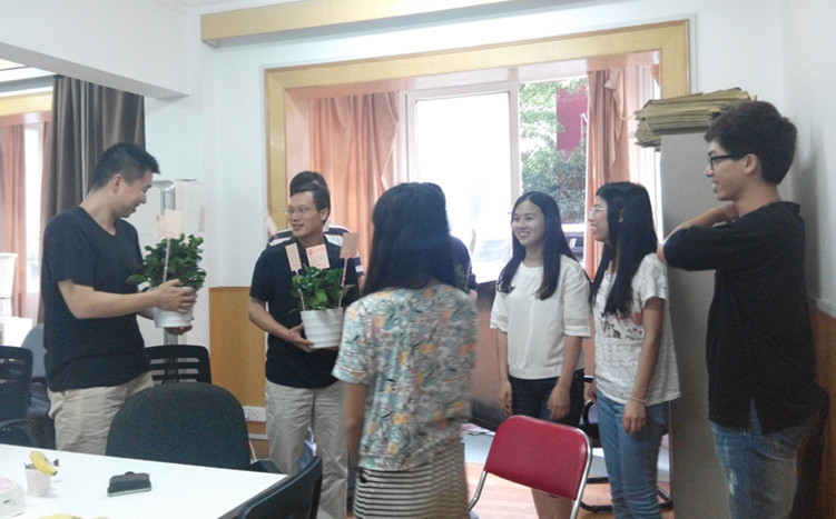 交流会最后,毕业生党员们用盆栽和小卡片寄托对老师们的无限感激之情,并亲手一一为老师送上。低年级党员们也向毕业生党员们赠送了精心准备的毕业礼物,感谢他们在支部组织生活中给予自己的帮助。