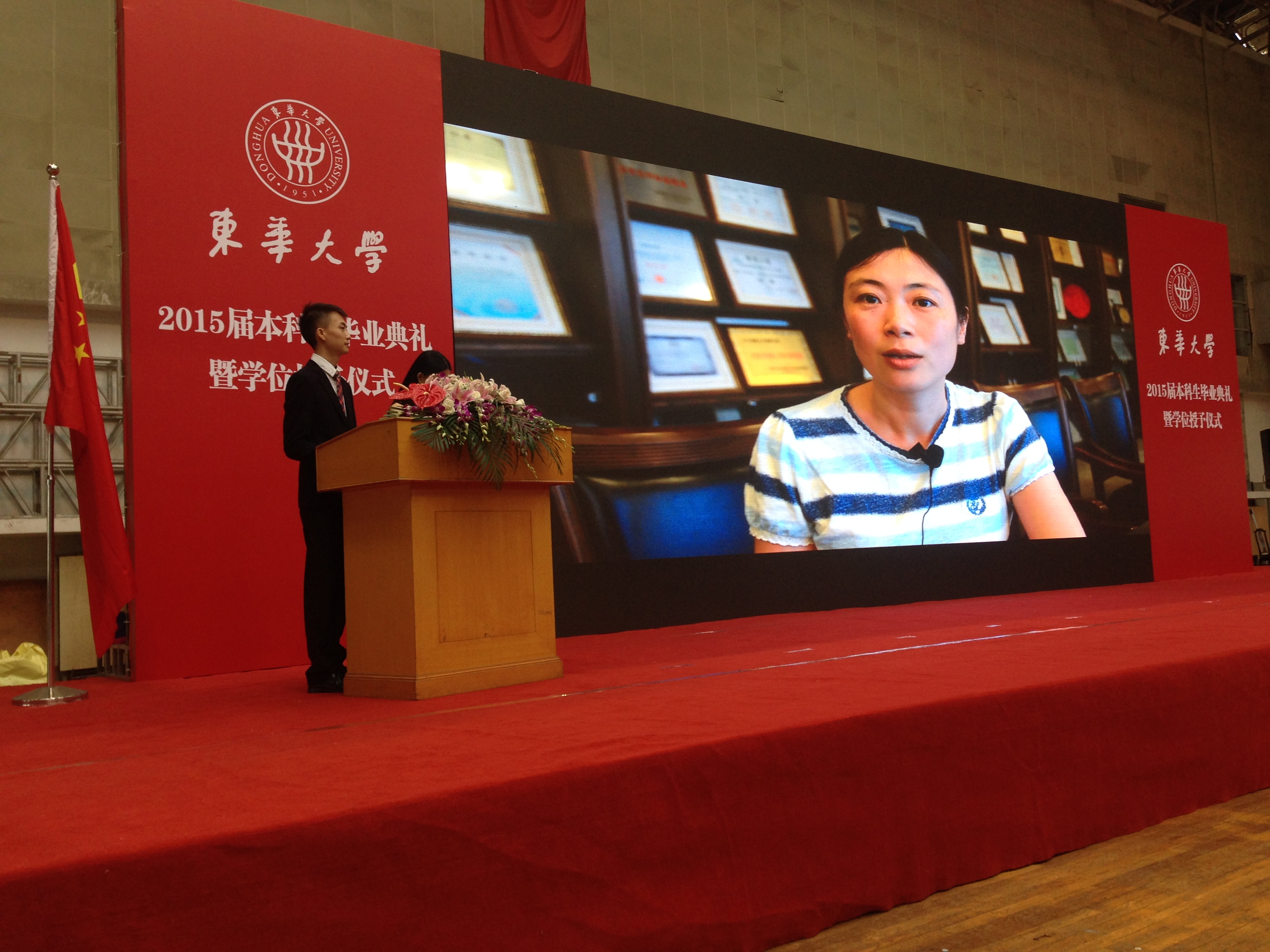 毕业生通过视频表达对母校、父母以及同学的感想,在座毕业生为之感动。