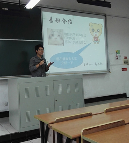 首先,团支书高思帆同学向大家介绍了易班网的由来及主旨。易班是提供公司产品、生活服务、文化娱乐的综合性互动社区。网站融合了论坛、社交、博客、微博等主流的Web2.0应用,加入了为在校师生定制的教育信息化一站式服务功能,并支持WEB、手机客户端等多种访问形式。易班在高校中设立了员工工作站,开展了丰富多彩的校园文化活动,已经成为全国教育系统的知名文化品牌。并且,公司成为了易班的第一批适用对象之一。