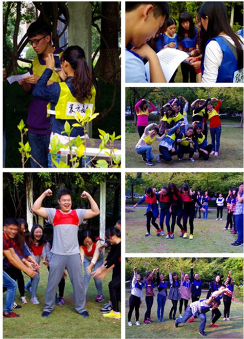 2015年11月5日下午3点40分,管理154硕班在旭日楼门前的草坪上开展了主题班级团建活动,此次活动的开展旨在让同学们能够在游戏中缓和初入研究生阶段的学习压力,加深同学们之间的情感联系;并且从中学习如何与别人合作,体验到团队合作的重要性,共同解决问题,加深集体认同,增加班级凝聚力。