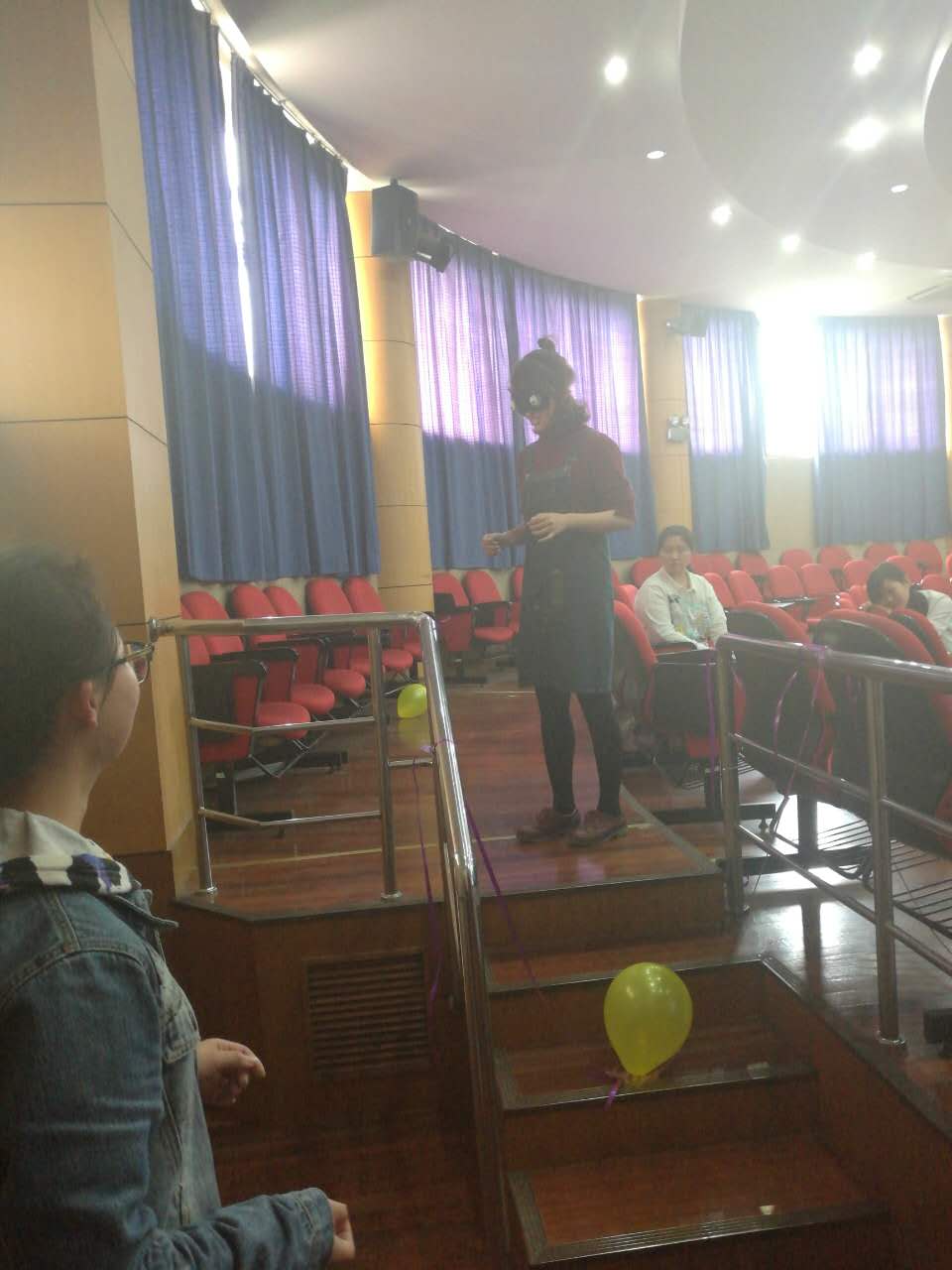 首先,蔡浪本明确了本次班会的目的是增进同学对自己和对他人的认识,在春暖花开的季节放飞心情,拥抱精彩人生。其后,通过游戏“鸡鸭对讲”进行班会预热,活跃了现场的气氛。紧接通过精心设计的“穿越雷区”和“信任之旅”两个游戏环节,增强同学之间的合作和信任,使全班同学懂得与人合作和信任的重要性。