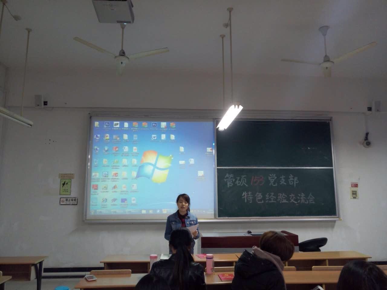 2016年4月27日晚上6点30分,管硕153党支部于四教104进行了4月份组织生活会。本次组织生活会采用了很特别的方式,以“分享经验,携手成长”为主题,部分优秀的党员进行了经验分享。这次组织生活会突出了我支部的特色,进行了创新,大大不同于以往的形式。