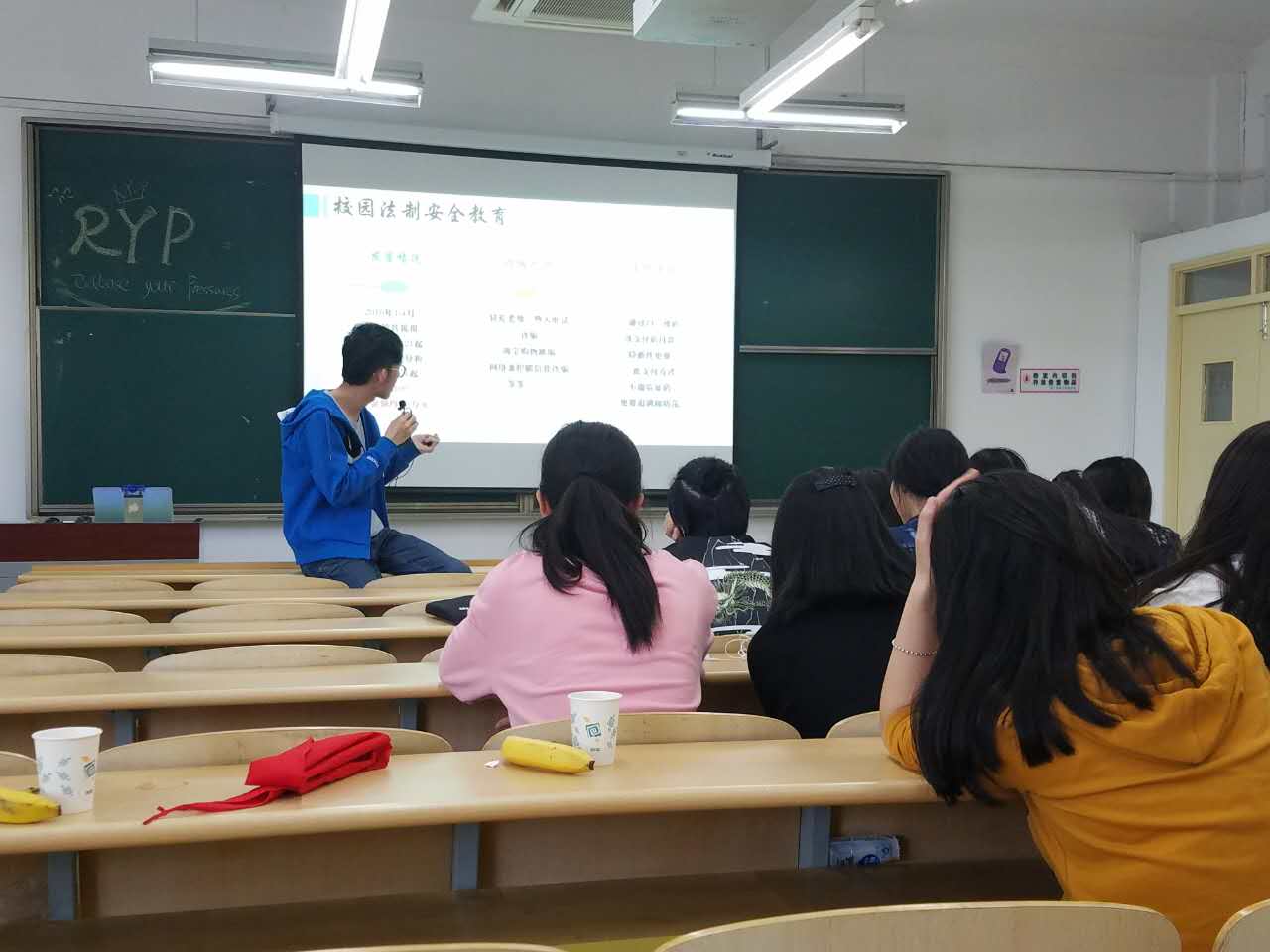 2016年5月17日星期二下午15点45分,旅游会经15级全体员工在辅导员沈嘉斌老师的主持下在2教104开展了有关校园法制安全教育的大班会。班会旨在增强员工的安全意识和法律意识,提高同学们的自我保护意识。