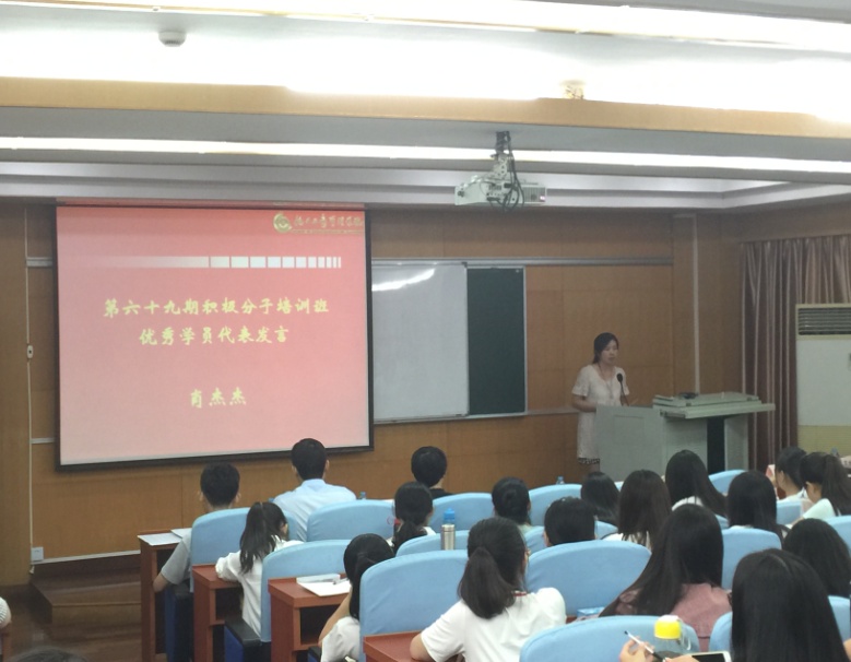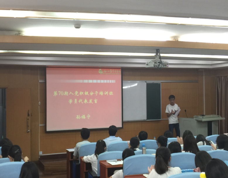 随后,本期培训班学员代表孙福宁发言,他首先让大家把掌声分别送给自己和学院,这是对学员自身的肯定,也是对学院的感激。此外,他结合了自身经历,激励大家不辜负他人期望,在未来的路上继续进步,争取早日加入中国共产党这个优秀的组织中。