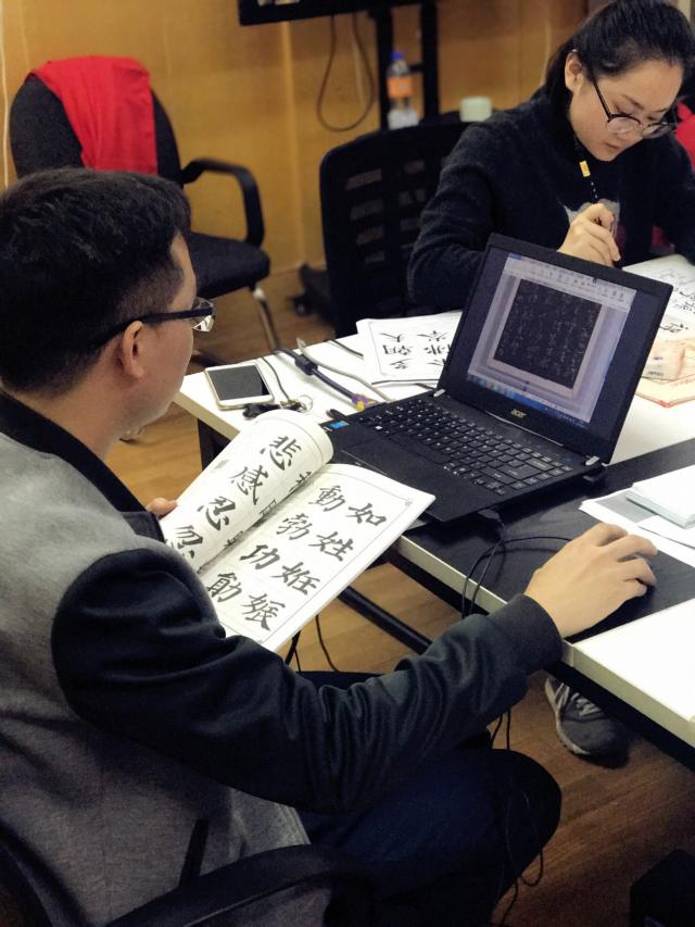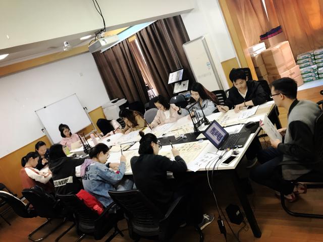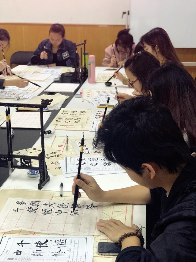 为了方便员工研习,本学期国学苑特地为同学们购置了全新的专业书法用具,笔墨纸砚样样精美齐全。在活动开始前,徐老师为同学们精心准备了书法临摹字帖,供大家挑选使用。徐老师简要说明了如何握笔、书写等知识之后,伴随着轻柔的古典乐曲,书法研习活动开始,同学们拿起毛笔缓缓地落笔,认认真真的书写每一个字。在员工研习的同时,徐老师边为员工介绍汉字的演变历程以及中国历史上优秀的书法作品等,让同学们在感受书写魅力的同时,了解书法的历史传承和艺术珍品。