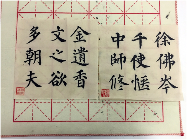 看着自己一笔一划写出的作品,学员纷纷拿起手机拍照留念,记录下这个闲适的时刻。日常快节奏的生活,容易让人心浮躁,而偶尔静下心来,研习书法,全身心地投入到书写之中,既陶冶情操又修身养性。