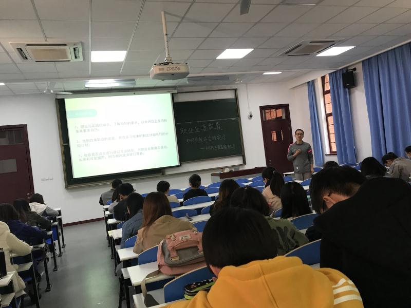 在最后的提问环节,丁老师对同学们提出的关于专业与就业方向选择、考研等问题作出了详细回答,鼓励大家要加强专业知识的巩固,扎实的专业背景是工作的很好的助力,还希望大家能合理分配好实习时间,不要让工作荒废了目前的学习,尽力在社交能力、公关能力、学习能力和应变能力等多方面综合提升自己,增强自身竞争力。经过本次班会,同学们对自己的未来的规划有了更深的思考,并表示将积极准备,为顺利就业打下坚持基础。