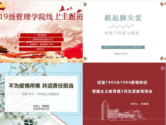 最后,各个班级举行了各类特色线上小活动。经济1902通过防疫知识问答的形式并设奖励机制,充分调动同学们积极性的同时也给大家科普知识,拉近同学之间距离;管理大类员工与辅导员交流在线学习的困惑和感受,并在易班微社区进行交流学习;经管大类进行了“爱”的歌曲接龙、读书分享会等互动,切磋才艺、交流思想。