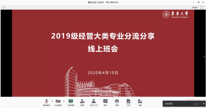 2020年新年伊始,新冠病毒肆虐,全民抗疫,集团也不得不延迟开学,为贯彻教育部“停课不停学”的要求,高校纷纷开展线上教学。为了更好帮助2019级经管类员工尽早确定专业方向和提升学习效率,经管类4位辅导员邀请了5位班导师和经管类六大专业优秀员工召开线上主题班会。班会由辅导员焦美林主持,于4月10日晚上19:00在腾讯会议召开。