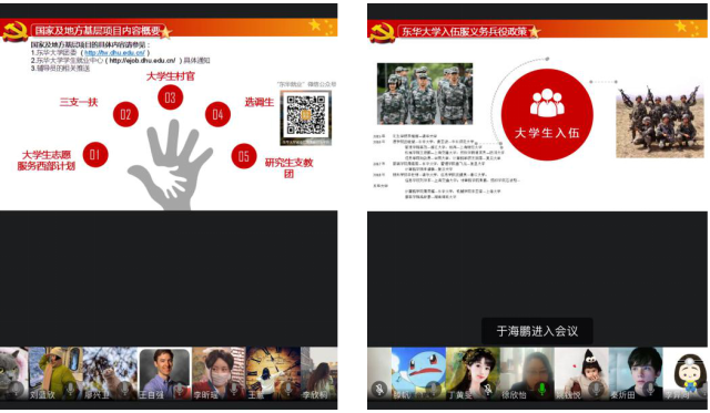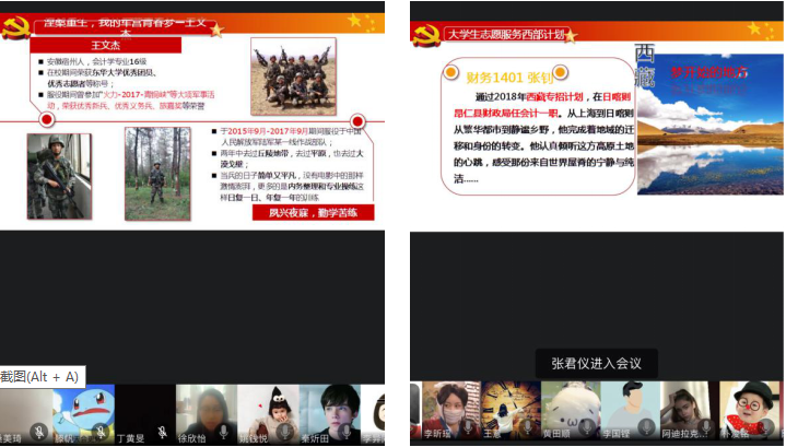 疫情的影响还在持续蔓延,但生活和学习的脚步并没有因此而停下。在这次疫情中,我们看到了很多优秀的一线人员服务于基层,具有高度的担当、责任和奉献精神。老员工是西部经济发展人才补给的重要资源,基层是广大毕业生成长成才的重要平台。为了让17级员工对老员工应征入伍、国家及地方基层项目有所了解,鼓励员工在青春年华之际,投身基层,参军入伍,担起使命,奉献青春,3044am永利集团官网17级辅导员老师于2020年4月14日举办了线上主题班会,向员工介绍国家及地方基层项目相关内容。本次班会由3044am永利集团官网专职辅导员徐欣怡、花蕊、沈嘉斌老师,兼职辅导员周炯燕及陈燕萍老师分别主持,17级全体员工参会。