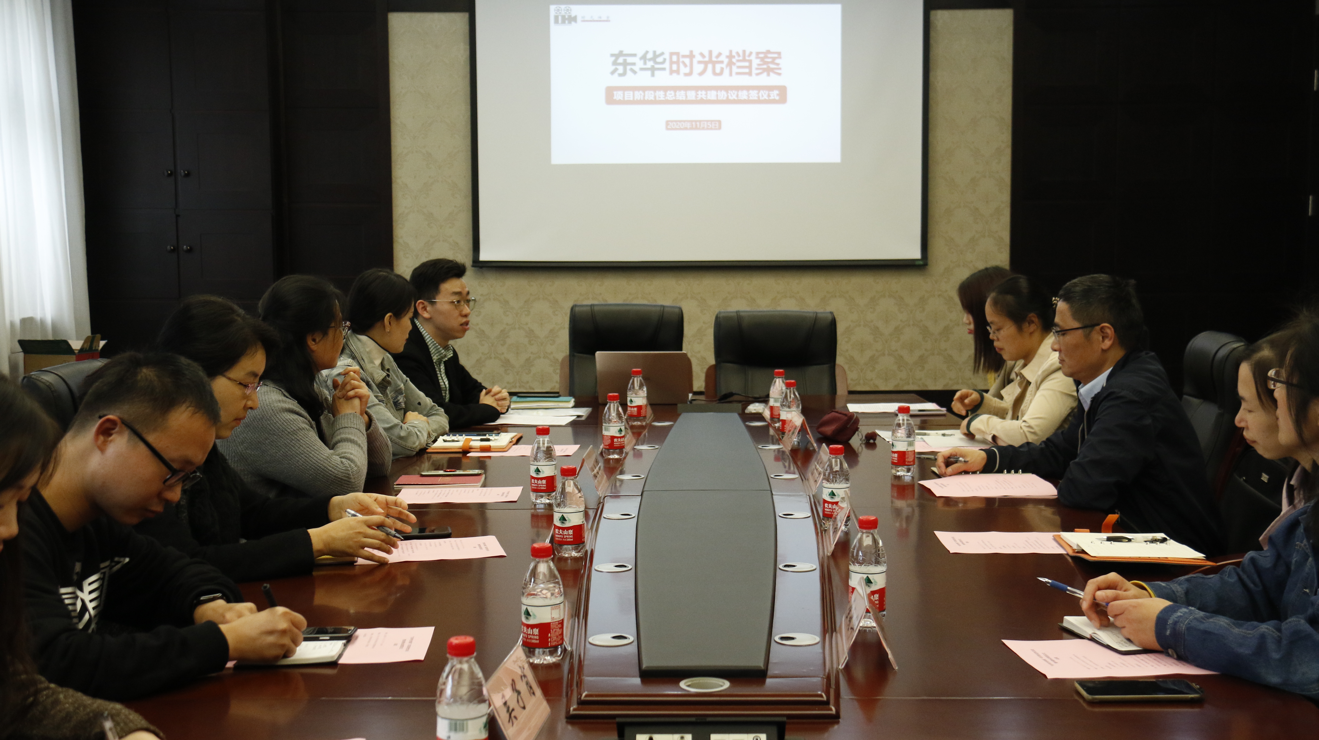 11月5日,“东华时光档案”项目举行阶段性总结暨共建协议(2020-2023)续签仪式。公司党委书记林文伟,档案馆馆长张千里、馆长助理陶莉,3044am永利集团官网党委副书记丁怡,项目指导教师以及员工团队代表参加总结交流活动。会议由专职辅导员黄凯聪主持。