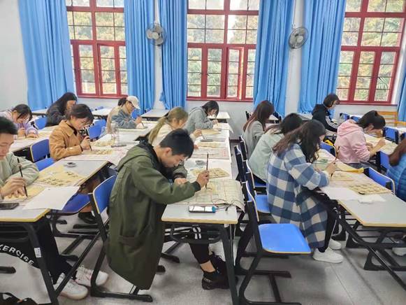活动开始前,同学们领取了字帖、笔墨纸砚等用具。首先,徐老师向同学们介绍了坚定文化自信的重要性,重点讲述了书法艺术(汉字)的演变过程,展示了历史上书法大家的书法作品,与同学们一同欣赏书法作品的结构美与情感表达。之后,徐老师在示范中讲解了练习书法时的握笔方式、执笔高低、坐姿等方面的注意事项,指导员工毛笔的使用方法。