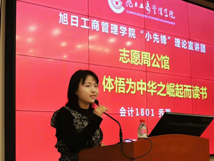 随“锋”向善,志愿培训深化服务内涵。公司面向全校志愿者集中开展培训会,邀请学院老师、社区志愿工作者和优秀志愿者分享经验,阐述志愿服务精神与价值。今年学院成立“旭日先锋”理论宣讲团,通过校内活动预热,借助易班,“DHU小管家”,“东华管院志管”,“DHU管院研会”公众号等渠道发布雷锋月系列推送,弘扬雷锋精神。
