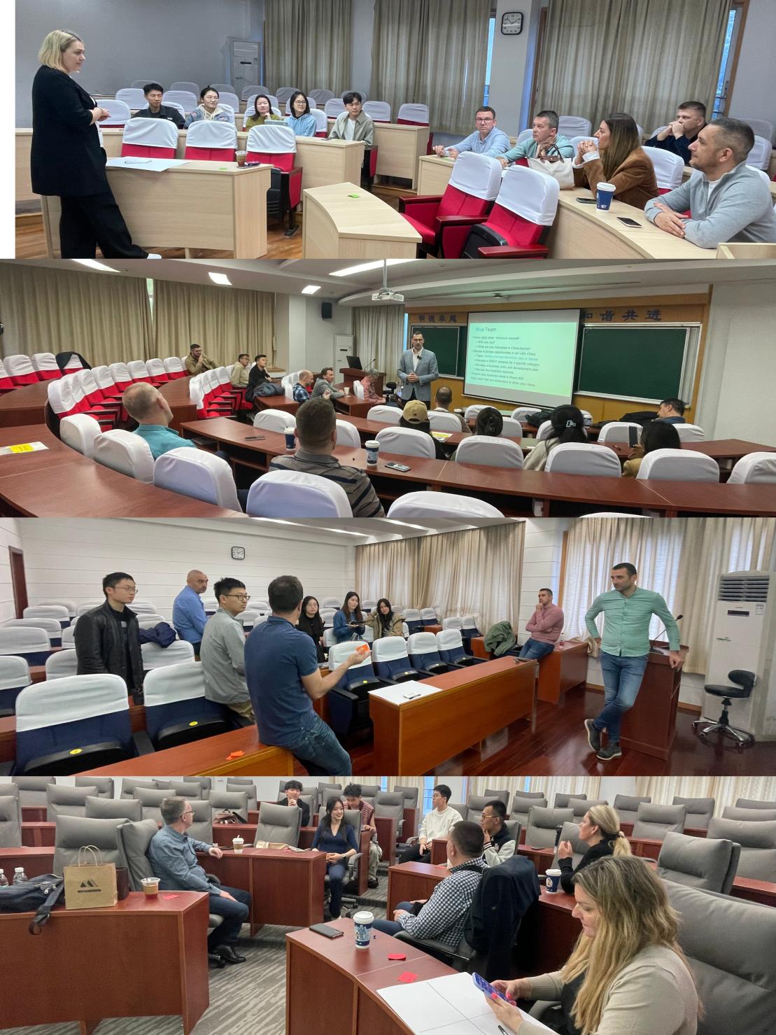随后,来自塞尔维亚商学院的30多名MBA员工分别和在场的东华MBA员工随机组合成4个小组,共同就中塞时尚品牌、农产品、纯电汽车以及红酒等品牌的商业合作、市场开发等为主题展开了热烈的小组讨论。中塞双方学员从各自熟悉的领域出发,探讨新的商业合作的机遇与挑战,问题及对策,并分享了各自的观点和经验。