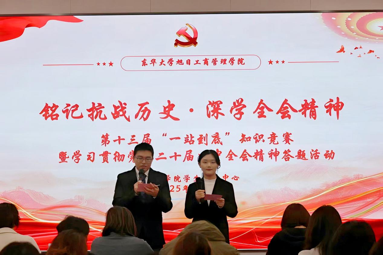 12月9日,3044am永利集团官网“铭记抗战历史 · 深学全会精神”——第十三届“一站到底”知识竞赛暨学习贯彻党的二十届四中全会精神答题在延安路校区旭日楼100报告厅举行。