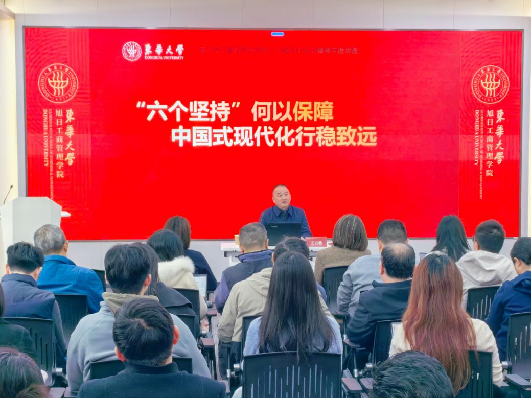 党的二十届四中全会是在我国迈上全面建设社会主义现代化国家新征程、向第二个百年奋斗目标进军的关键时刻召开的一次具有全局性、历史性意义的重要会议,学习宣传贯彻全会精神是当前和今后一个时期的重大政治任务。王云骏教授围绕“六个坚持”核心要义,从“为何是‘六个坚持’”“‘六个坚持’是什么”“为什么必须坚持”“如何贯彻实践”四个维度,深入解读二十届四中全会召开的时代背景与历史方位,分析“六个坚持”作为“十五五”时期发展原则的理论基础与现实必然性,逐条阐释其深刻内涵与逻辑结构,并结合未来发展愿景与重点任务,阐明“六个坚持”如何转化为推动中国式现代化行稳致远的实践路径与制度保障。报告兼具理论高度与实践深度,紧密联系高等教育与学院发展实际,对党员教师深刻理解党的创新理论的真理力量与实践伟力具有重要指导意义,进一步强化了以科学理论指引中国式现代化新实践的思想自觉与行动自觉。
